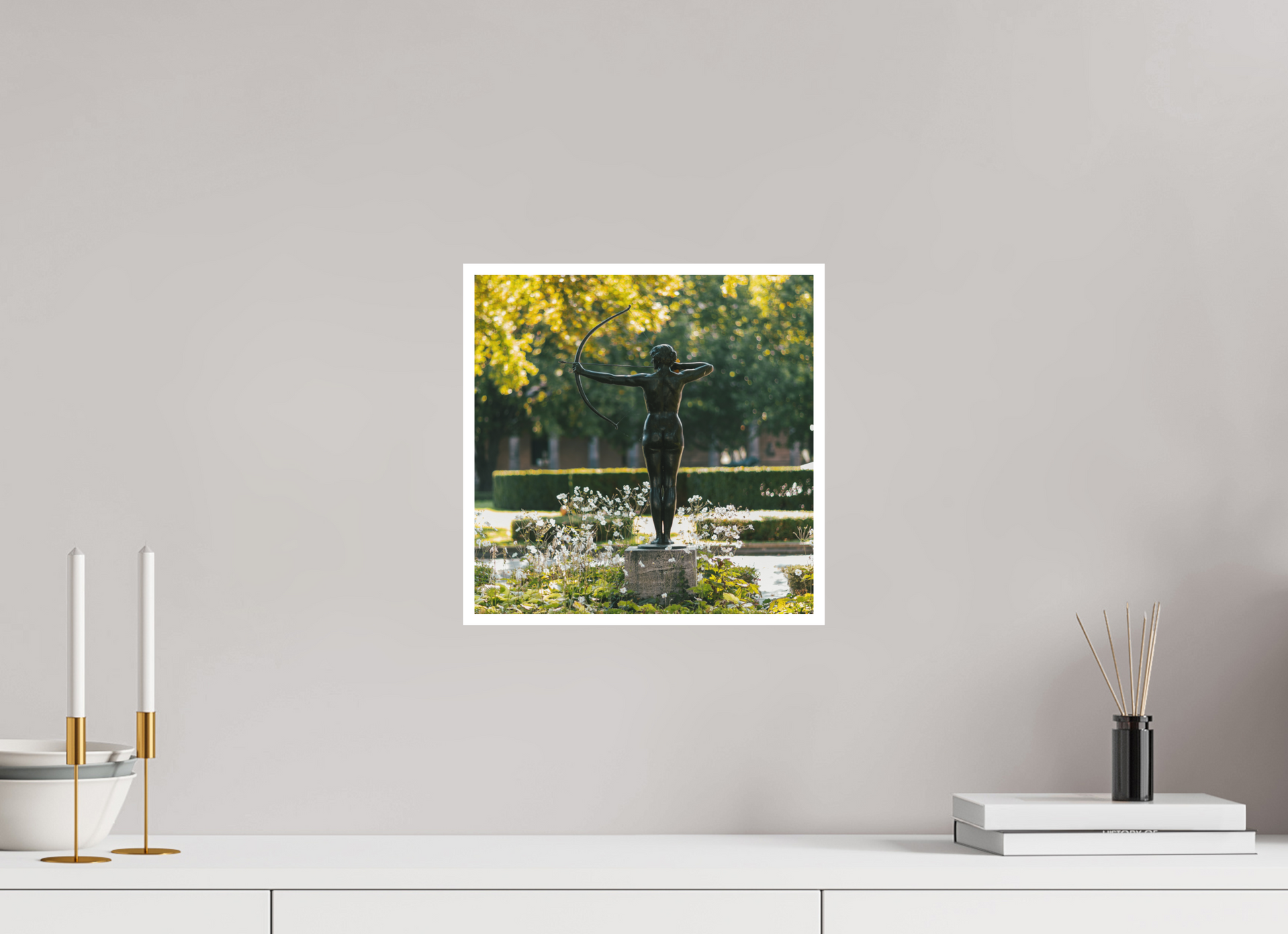 A classical garden sculpture captured mid-draw, merging art, motion, and timeless mythology.