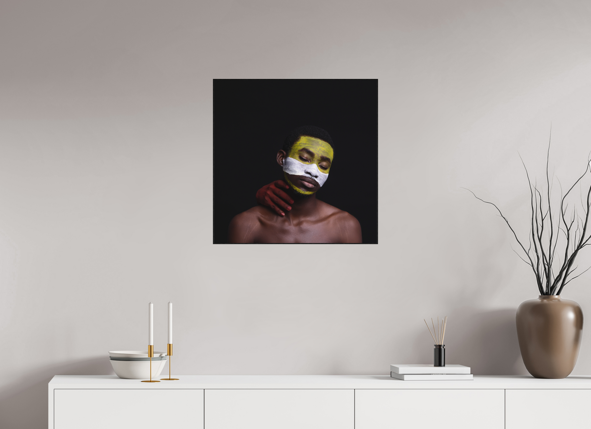 Blood is Life questions the human cost of freedom and the sacrifices carried across generations. A male figure, marked with white and yellow paint, is held by a hand painted in red — a striking symbol of blood, struggle, and sacrifice. The image reflects on the universal truth that freedom often comes at a price, and asks: Can humanity move beyond cycles of violence toward peace?