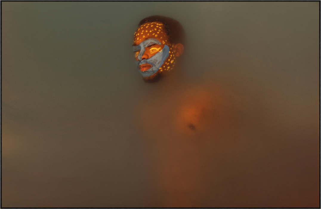 This work reflects on the fleeting nature of memory and the inevitability of forgetting that often accompanies age. The painted face and immersion in water pay homage to Yoruba traditions and deities, where water symbolizes both life and the passage of time. Withering is a meditation on holding on to what fades, balancing personal memory with ancestral connection.